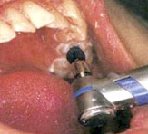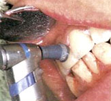 歯科の専門家が器械を使って歯面の研磨を行うPMTC